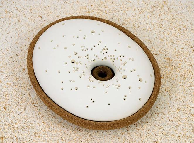 The urns design is deceptively simple. The bottom shell is made out of biodegradable materials that aids in neutralizing the alkalinity of the cremated ashes, while the top cover is a hollow, ceramic shell with small holes that allow rainwater to be collected inside, and released slowly. This moisture helps the bottom shell decompose naturally, and as the shell breaks down, the cremated remains are gently recomposed with the soil underneath, ultimately transforming into nutrients for a growing sapling, which will someday shatter the ceramic top in the process. The result is a beautiful, living tree.